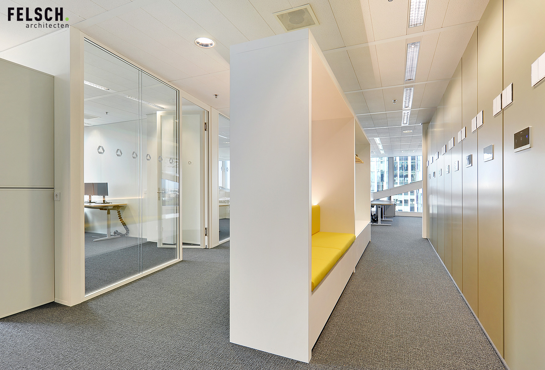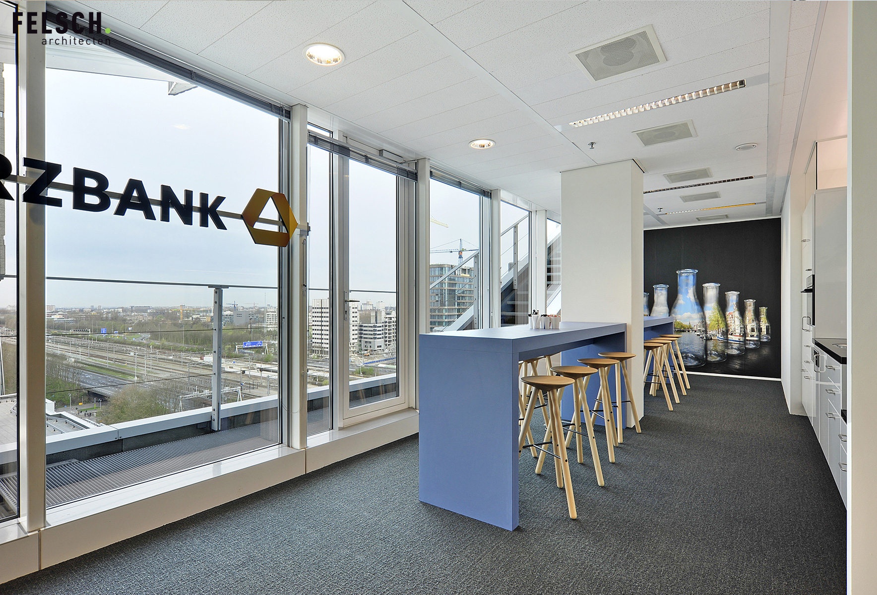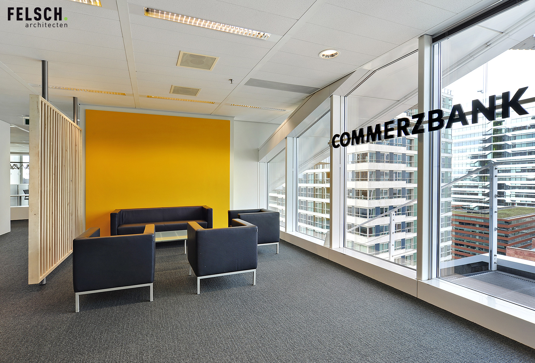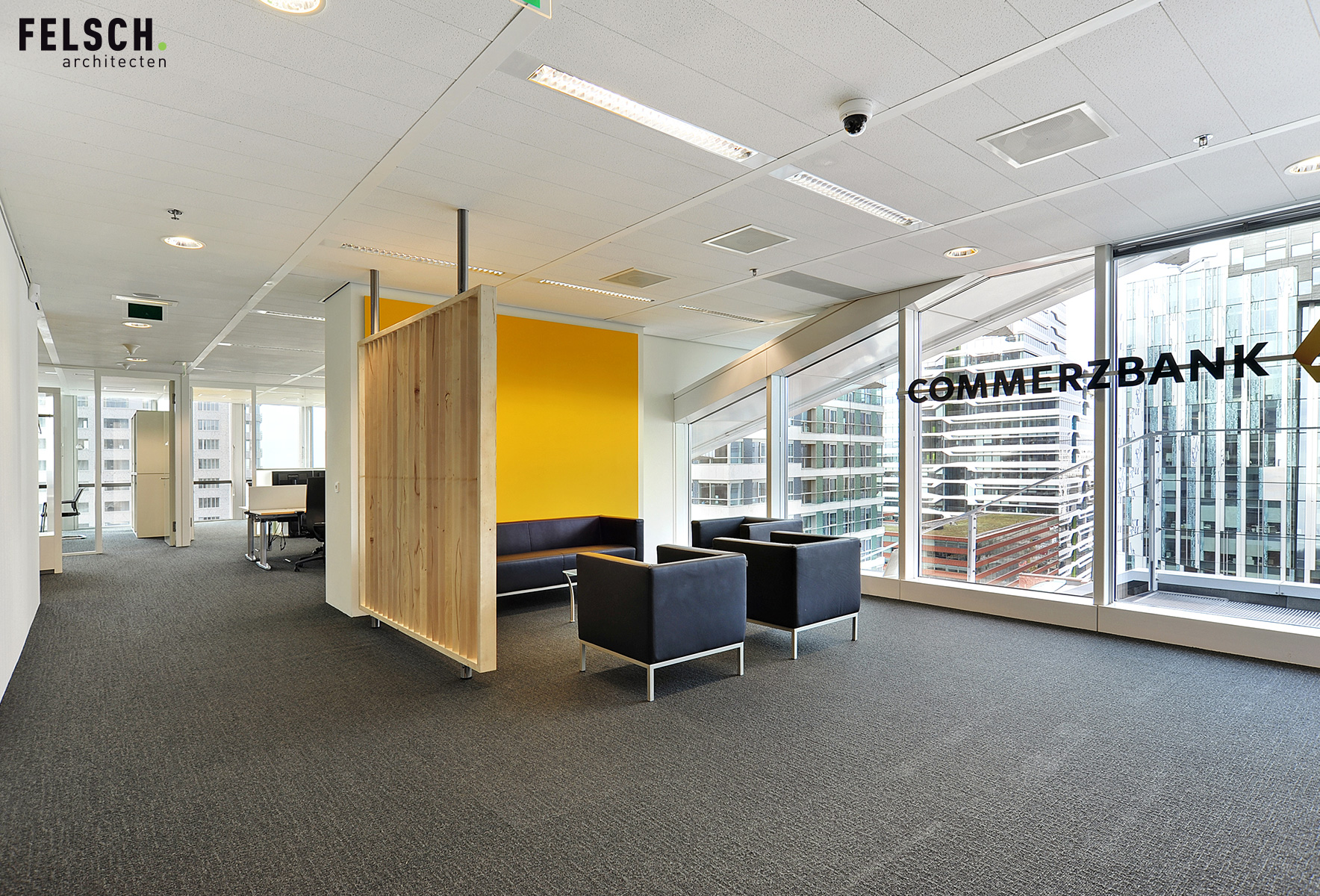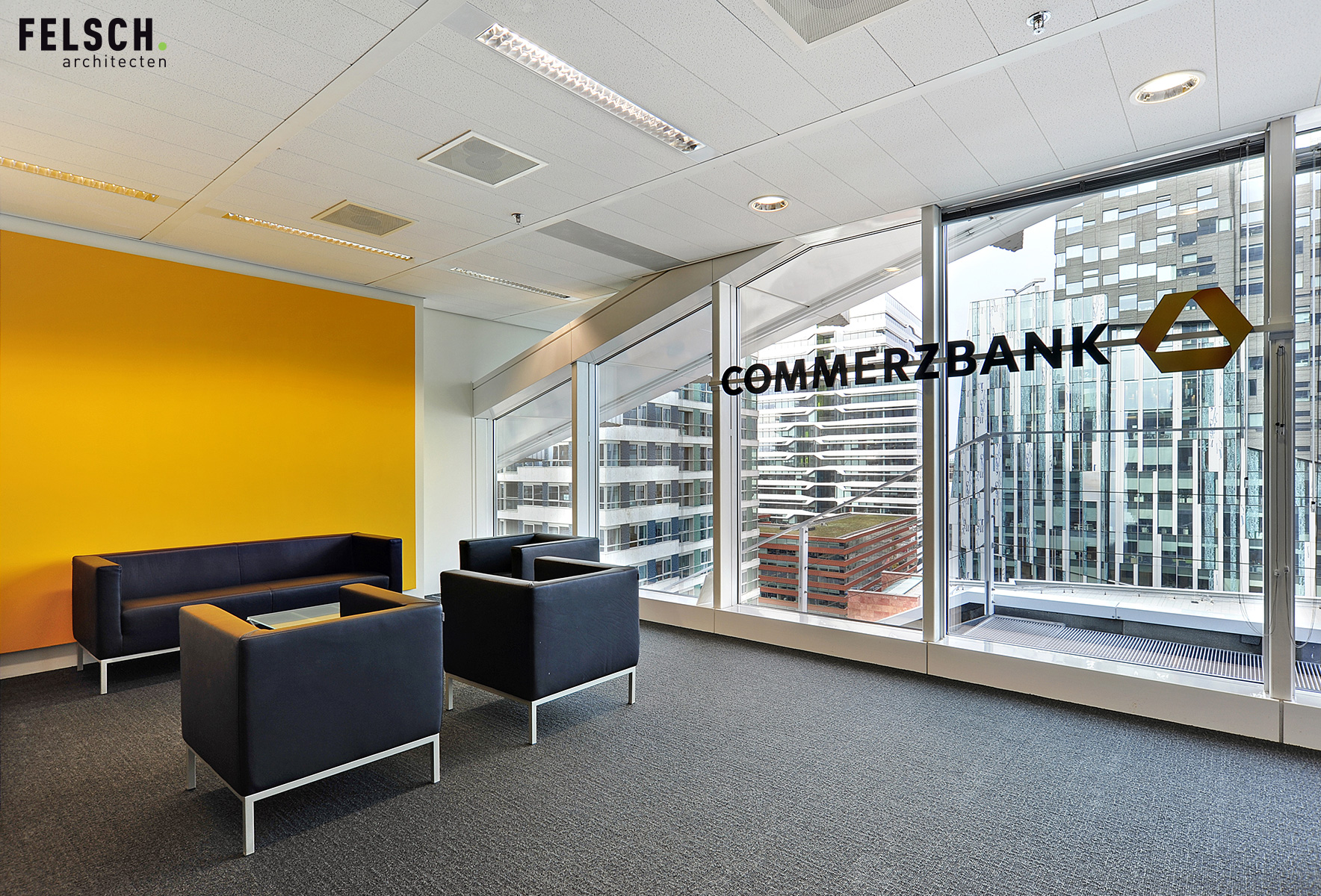 Voor het Nederlandse kantoor van de Commerzbank zijn wij door Nething Generalplaner GmbH gevraagd het ontwerp te realiseren voor de kantoorverdieping in het Vinoly gebouw op de Amsterdamse Zuidas, onderdeel van Mahler 4. Het Vinoly gebouw typeert zich door zijn kenmerkende trap die in de gevel om het gebouw heen draait en de verticale gevelprofielen die een spel met open en gesloten spelen, afhankelijk van de kijkhoek.