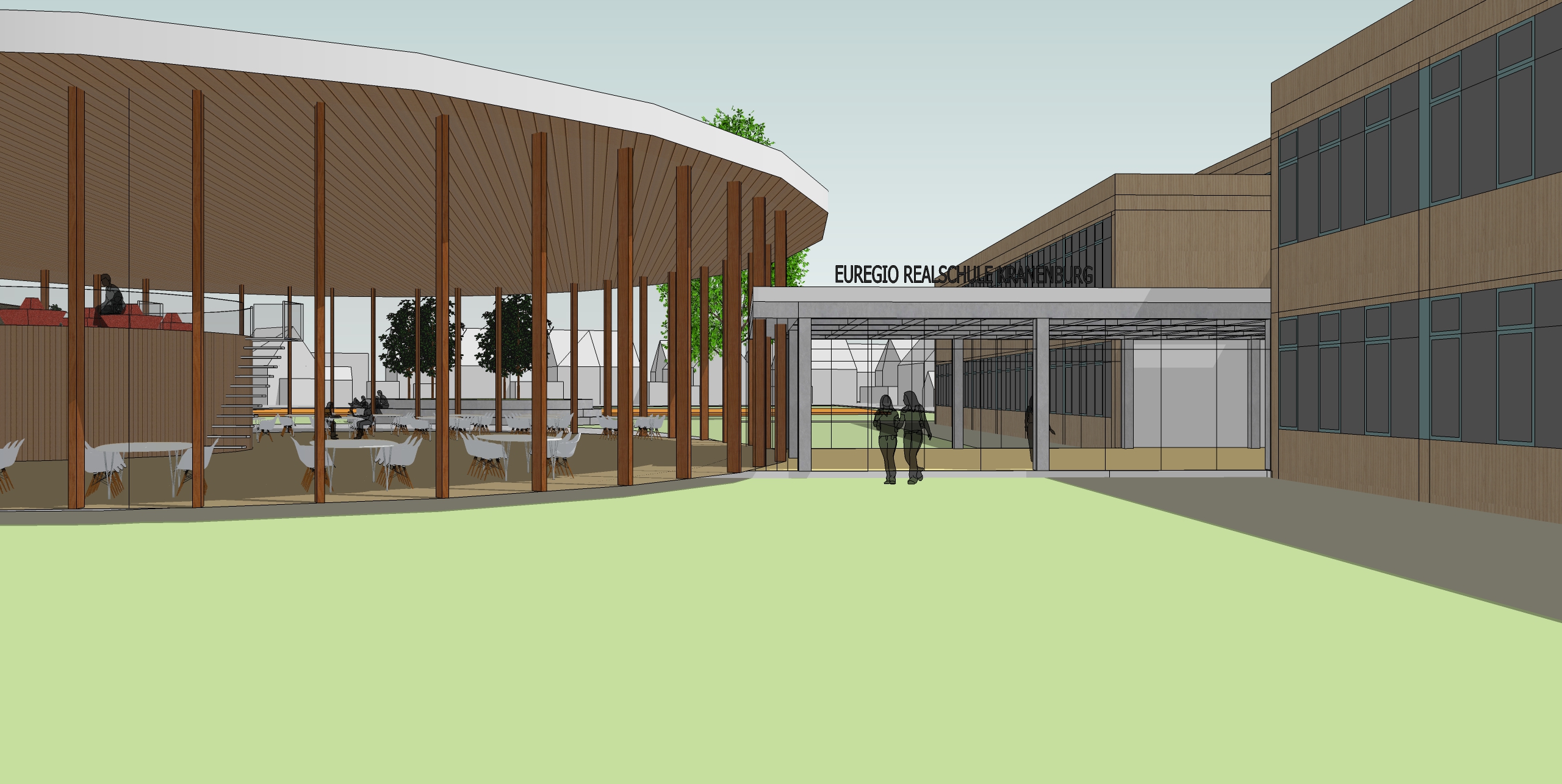 Voor de Euregio school in Duitsland hebben wij een studie gedaan naar de transformatie en uitbreiding van het bestaande schoolgebouw. Het verouderde gebouw heeft een zeer bruikbare functionele structuur om het nieuwe onderwijssysteem met een vrijere opzet van onderwijsruimten te realiseren.