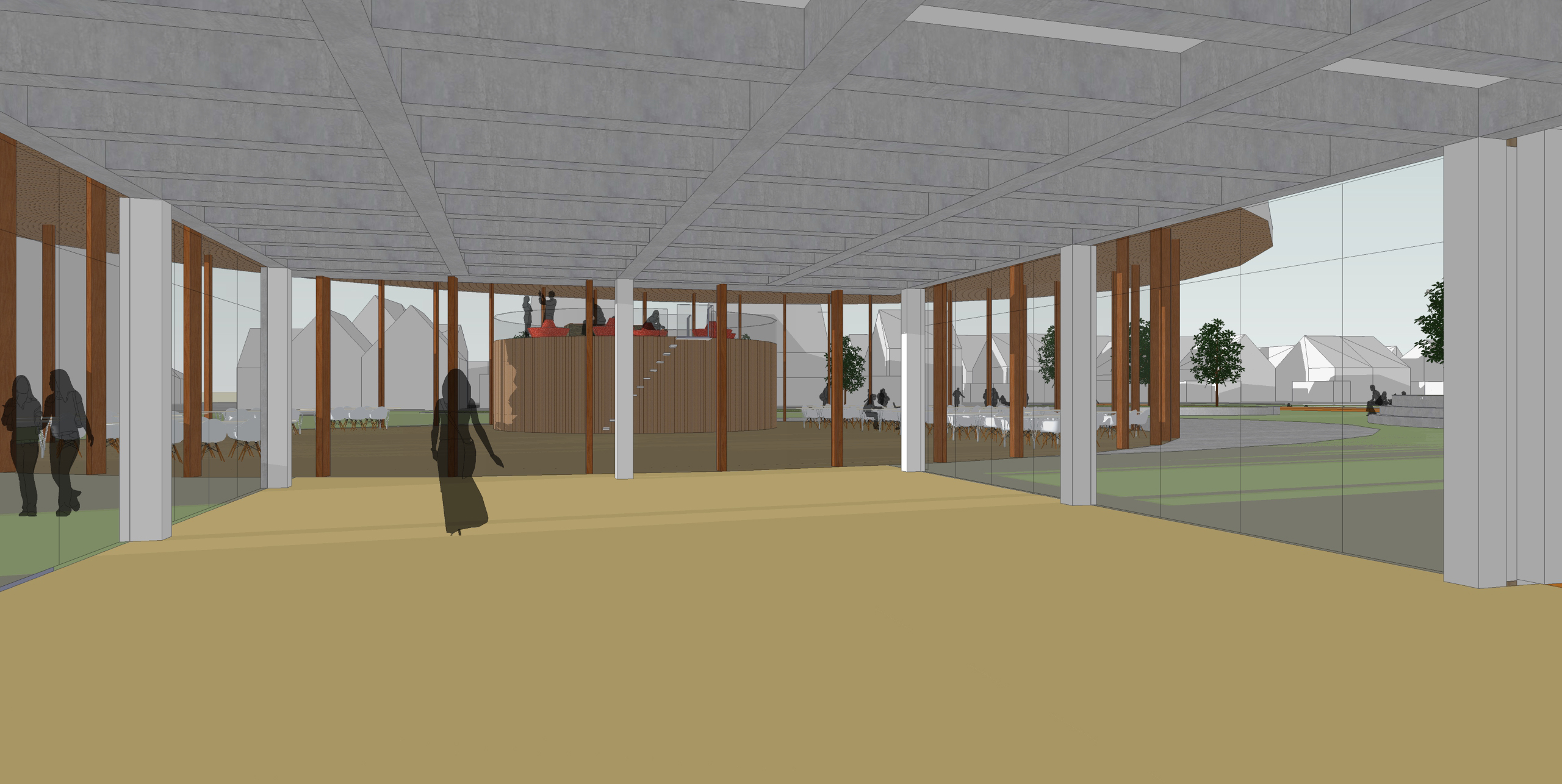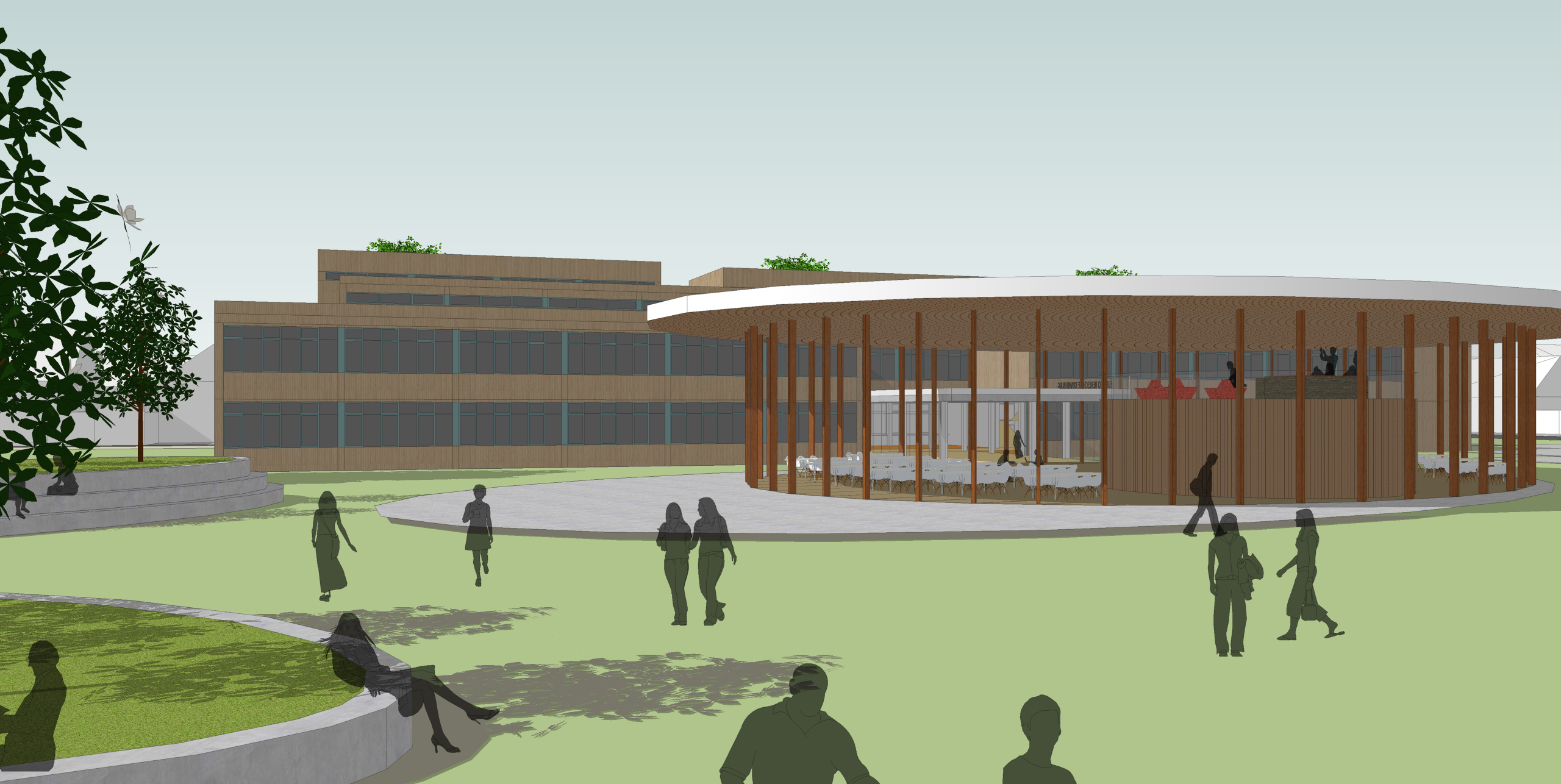 Er worden verschillende vormen van samenwerking in kleinere groepjes en individuele werkplekken aangeboden naast het klassikale onderwijs. Om het programma van de nieuwe school te realiseren is het nodig om een uitbreiding te realiseren met een mensa/aula met keuken, bibliotheek en mediatheek.