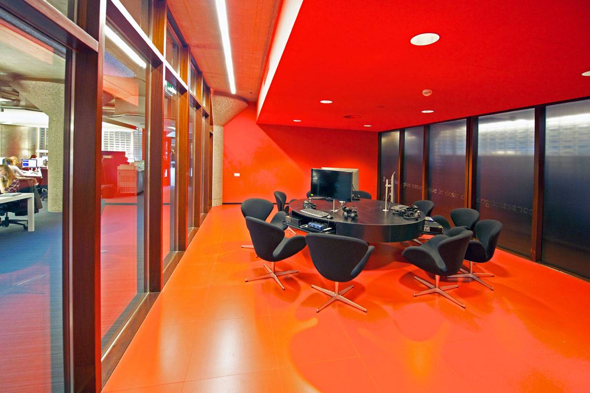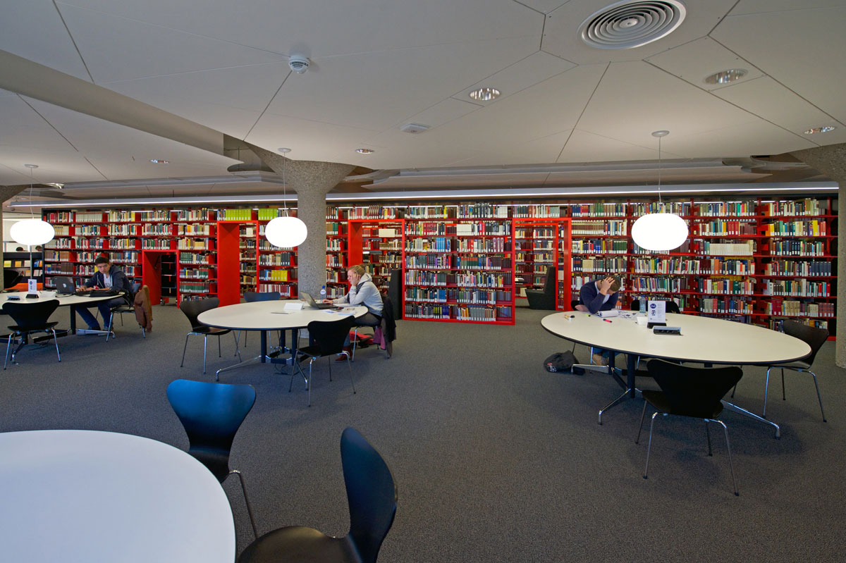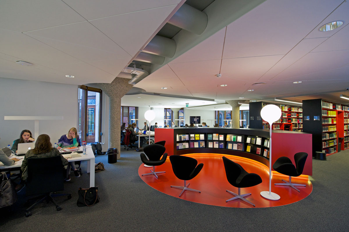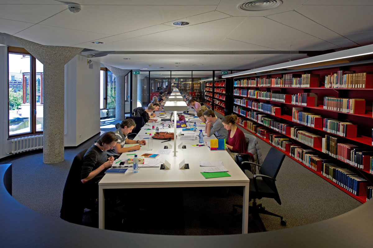 De bestaande Universiteitsbibliotheek heeft door veranderend gebruik van de bibliotheek als plek waar samen met medestudenten gestudeerd en samengewerkt wordt behoefte aan meer capaciteit. Hiervoor is het aantal werkplekken bijna verdubbeld, zijn samenwerkruimten toegevoegd, een centrum voor onderzoekers, studiekabinetten en uitgebreide toiletgroepen. Hiervoor is de opstelling van de boekencollectie om de atria heen als een decor geplaatst. De lange kasten worden onderbroken door werkplekken in de kast, doorgangen en opstelplaatsen voor de boekenkarren. Op de begane grond is een multimediaruimte toegevoegd voor het samen bekijken van media en buitenlandse televisieprogramma’s.