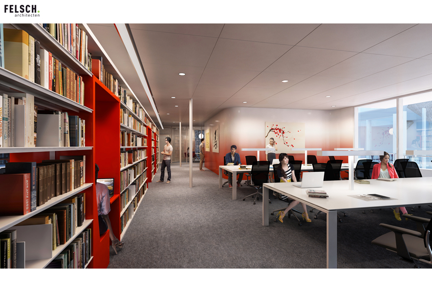 We zijn gevraagd om de Universiteitsbibliotheek in Leiden uit te breiden voor de ‘Asian Library’. Door het overplaatsen van enkele prominente collecties zoals de collectie van het Tropeninstituut KIT in Amsterdam en de aziatische collectie van de Universiteit Leiden naar de Universiteitsbibliotheek is er behoefte aan uitbreiding om de collectie toegankelijk te maken binnen de bibliotheek. Hiervoor wordt op het dak het gebouw uitgebreid met een subtiele en serene nieuwe vleugel op de tweede verdieping.
