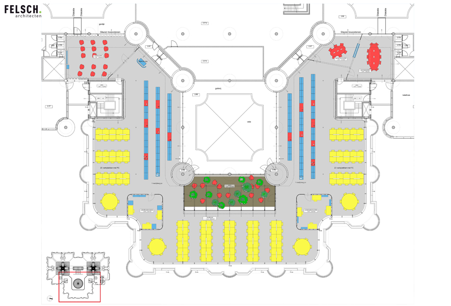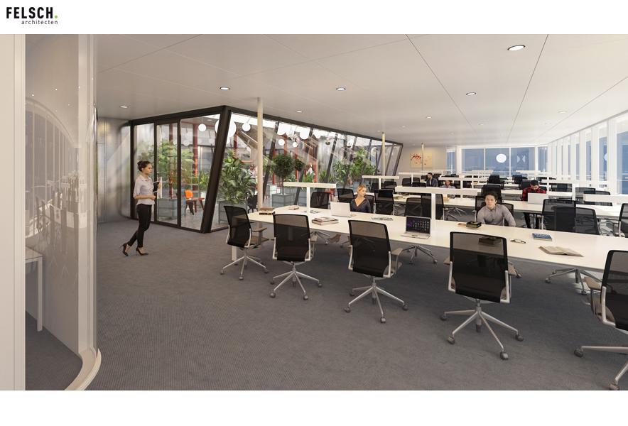 Door een binnentuin langs het bestaande atrium te plaatsen wordt veel licht diep de nieuwe verdieping en het bestaande atrium in gebracht en ontstaan er afwisselende sferen. De binnentuin heeft een andere sfeer: Hier kan overleg gevoerd worden tussen de Aziatische planten. Deze is vanuit de nieuwe vleugel als ook vanuit het atrium te bewonderen.