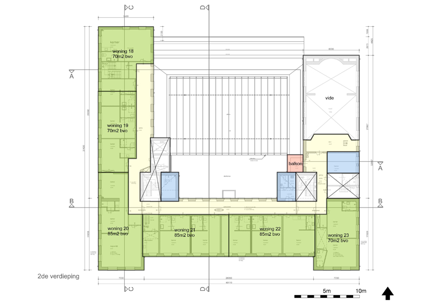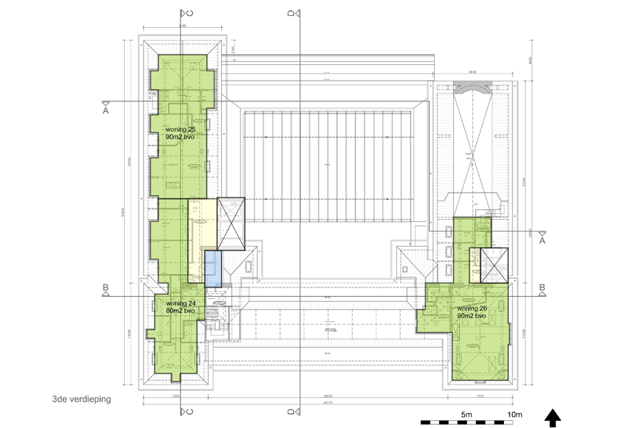 Met behoud van de karakteristieke monumentale elementen hebben we het gebouw opnieuw ingedeeld met levensloopbestendige woningen, gemeenschappelijke ruimten en commerciële ruimten.