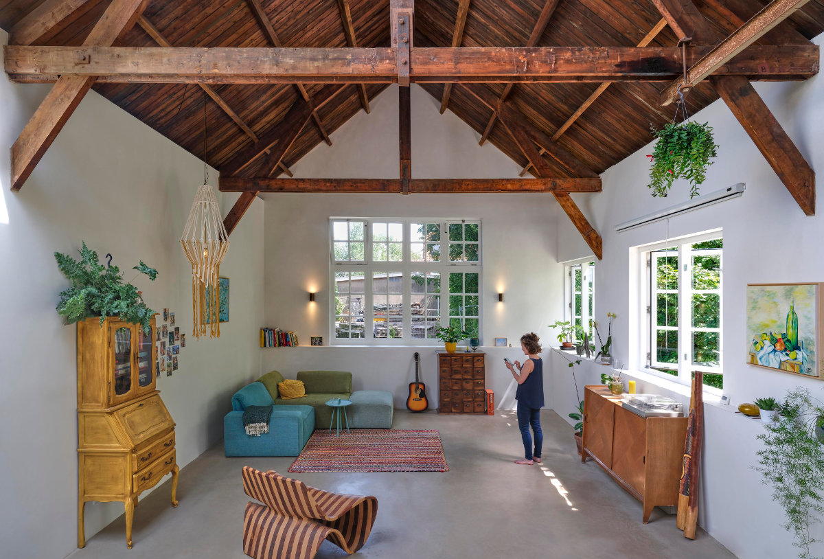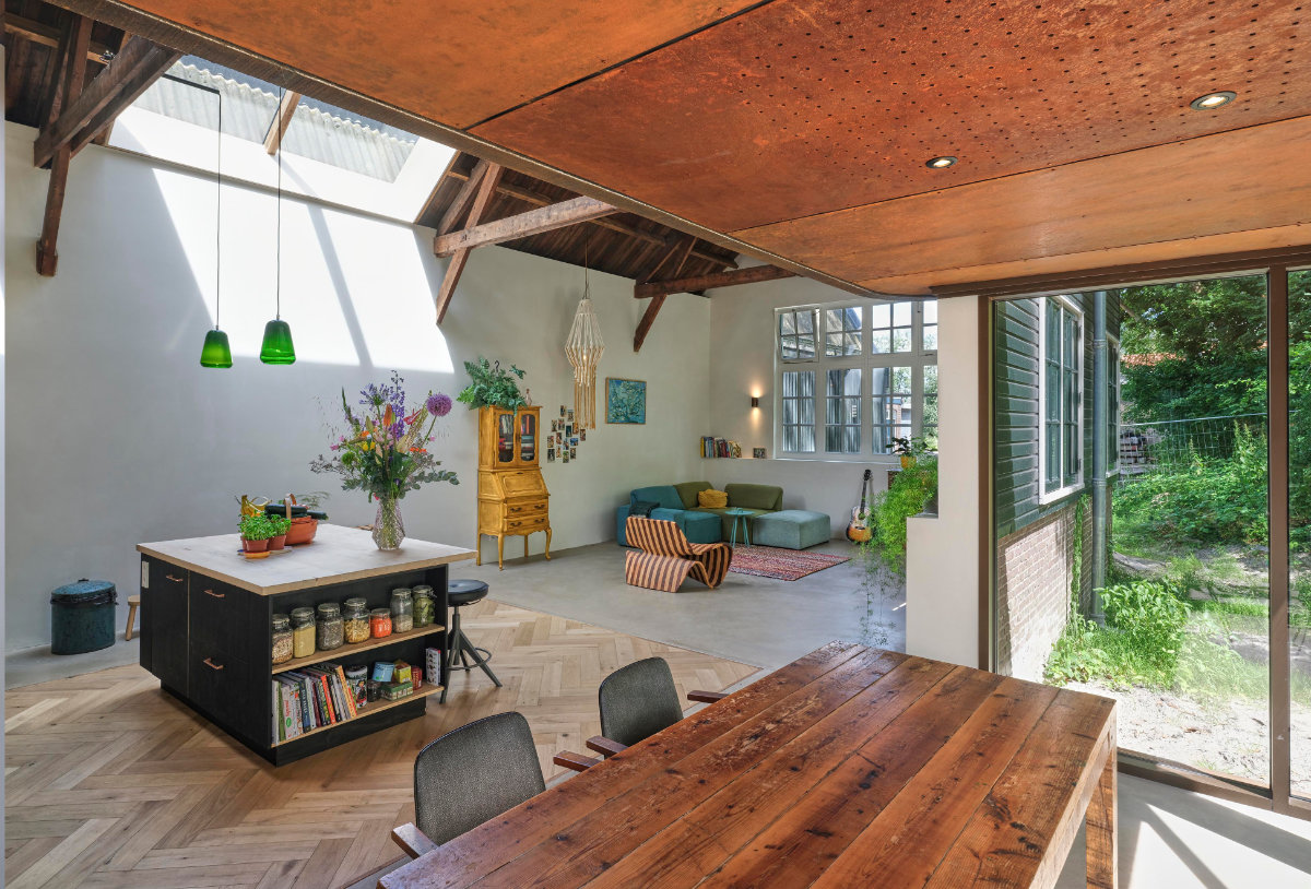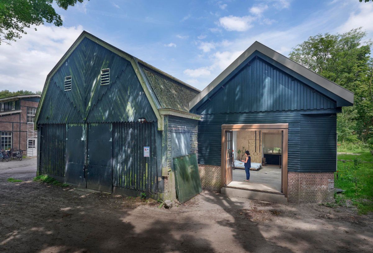 De monumentale schilderwerkplaats A5 op het Hembrug terrein is getransformeerd naar een duurzame woon-werk woning.