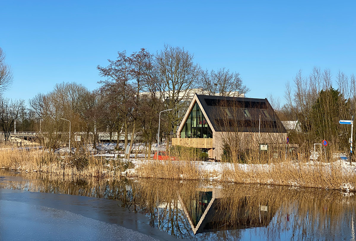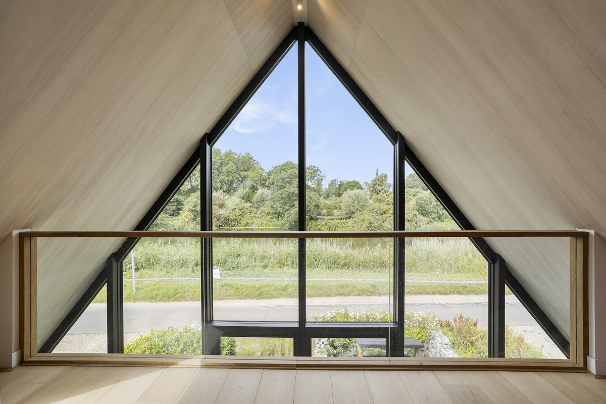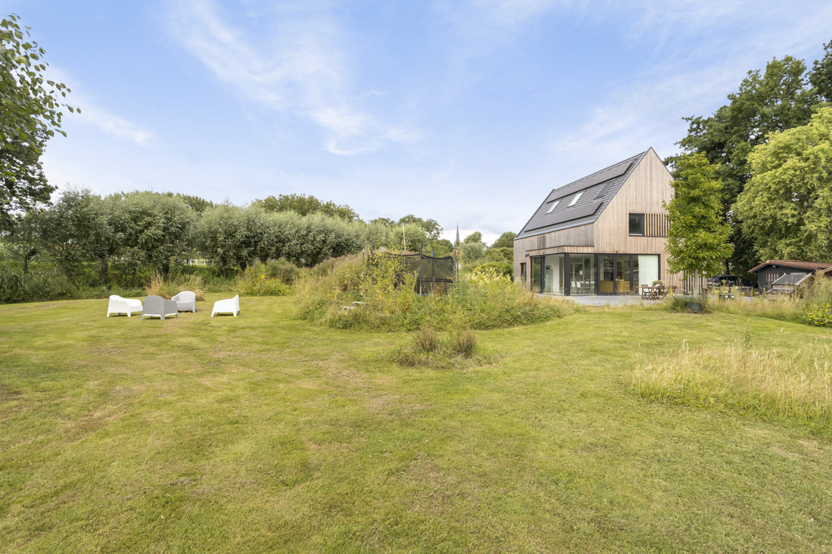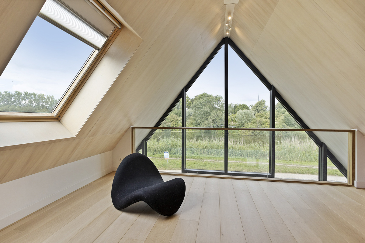 Voor een jong gezin hebben wij een duurzaam woonhuis aan de rivier de Vecht ontworpen. Het ruime kavel bevindt zich achter een dijk aan de rivier waardoor het iets lager ligt dan de Vecht. Om maximaal van de kwaliteit van de locatie gebruik te maken is de woonkamer op de eerste verdieping geplaatst met een schitterend uitzicht over de Vecht en het bastion van Weesp. De woonkeuken is juist aan het landje op de begane grond gelegd om van de tuin te genieten. De open vides bij de trappartij geeft een mooie ruimtelijke ervaring en verbinding tussen deze twee leefruimten. Dit wordt door het split level nog verder versterkt.