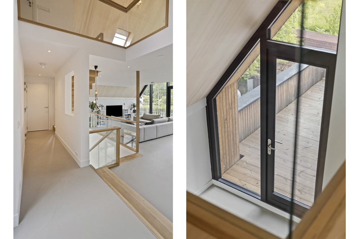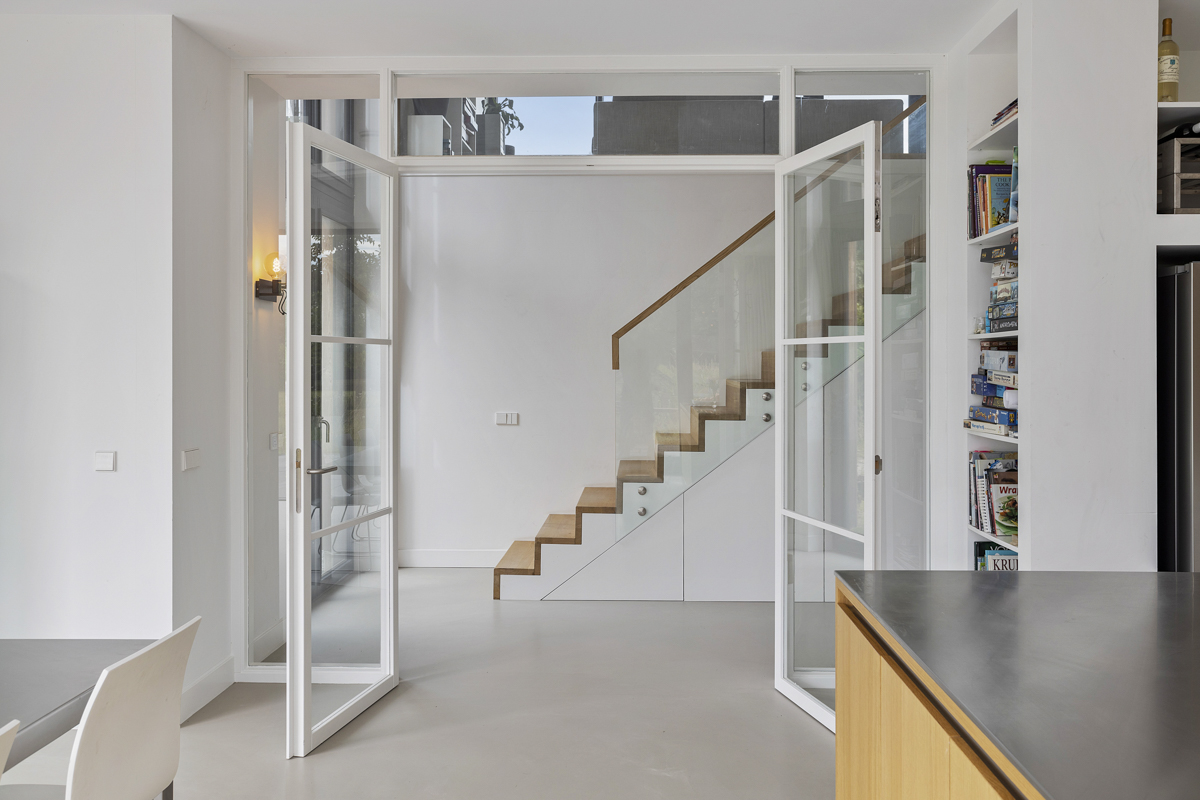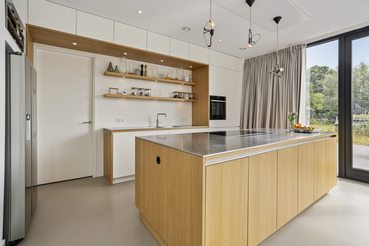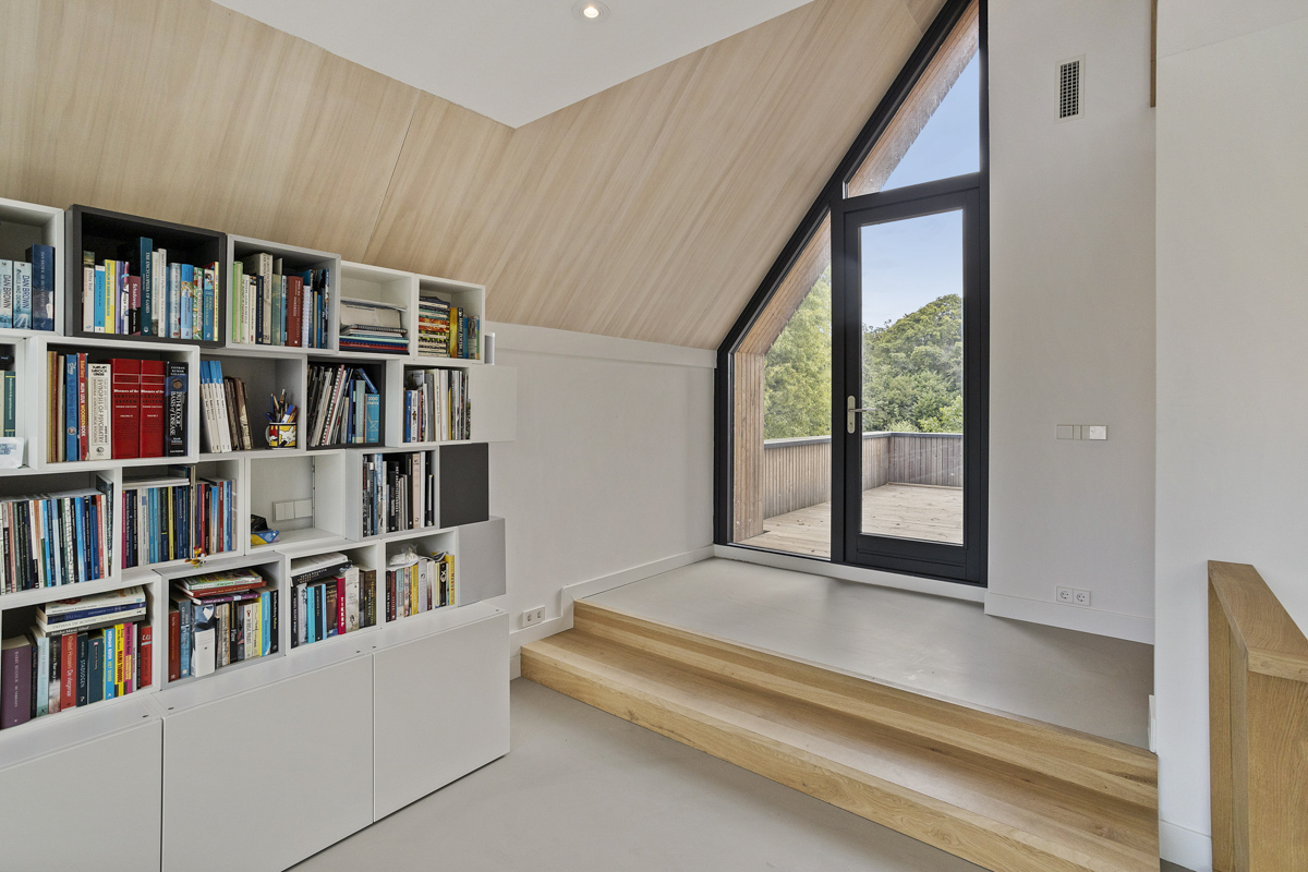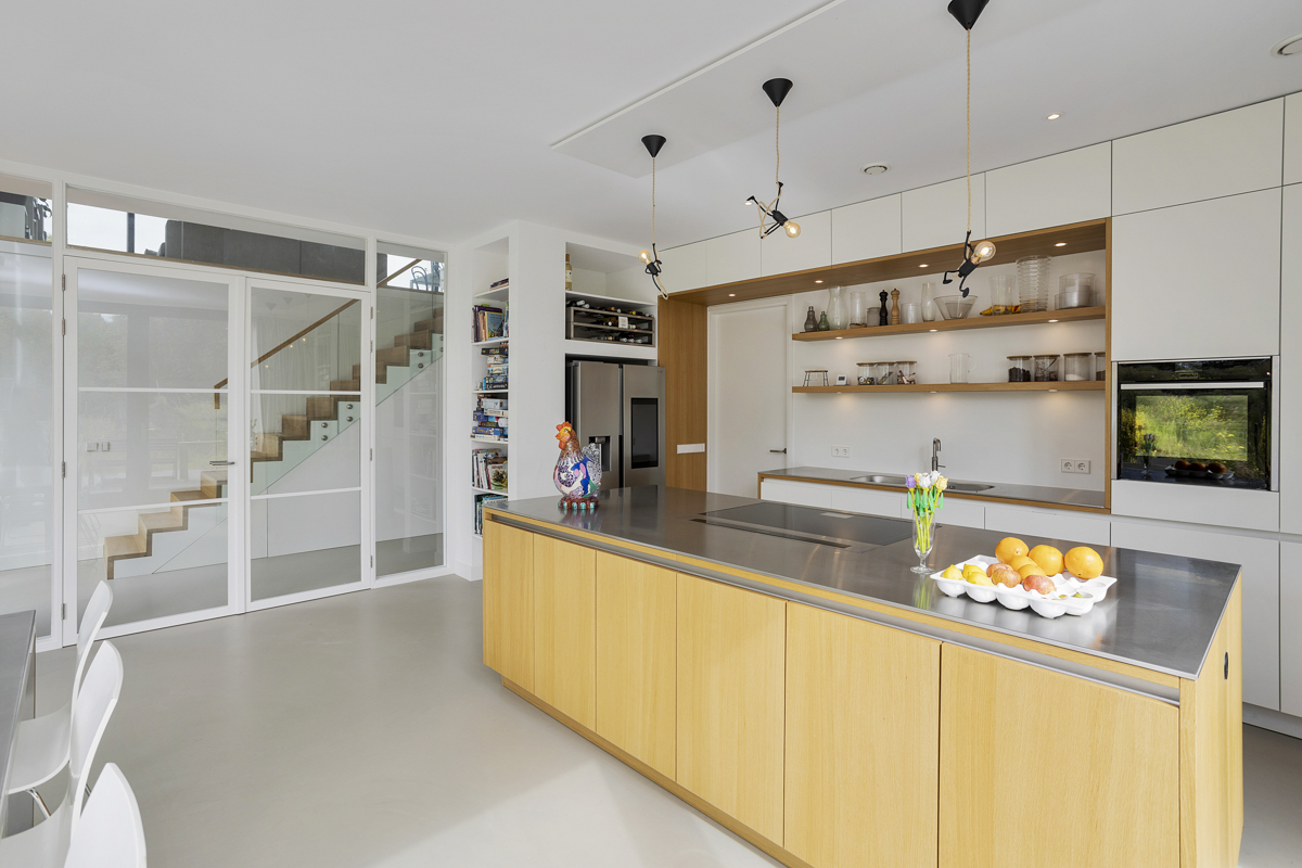 Voor een jong gezin hebben wij een duurzaam woonhuis aan de rivier de Vecht ontworpen. Het ruime kavel bevindt zich achter een dijk aan de rivier waardoor het iets lager ligt dan de Vecht. Om maximaal van de kwaliteit van de locatie gebruik te maken is de woonkamer op de eerste verdieping geplaatst met een schitterend uitzicht over de Vecht en het bastion van Weesp. De woonkeuken is juist aan het landje op de begane grond gelegd om van de tuin te genieten. De open vides bij de trappartij geeft een mooie ruimtelijke ervaring en verbinding tussen deze twee leefruimten. Dit wordt door het split level nog verder versterkt.