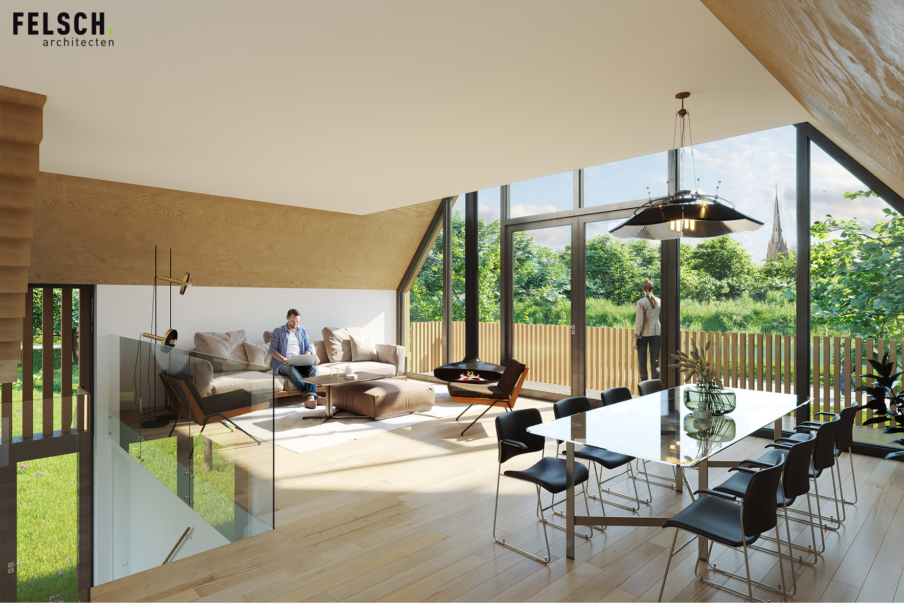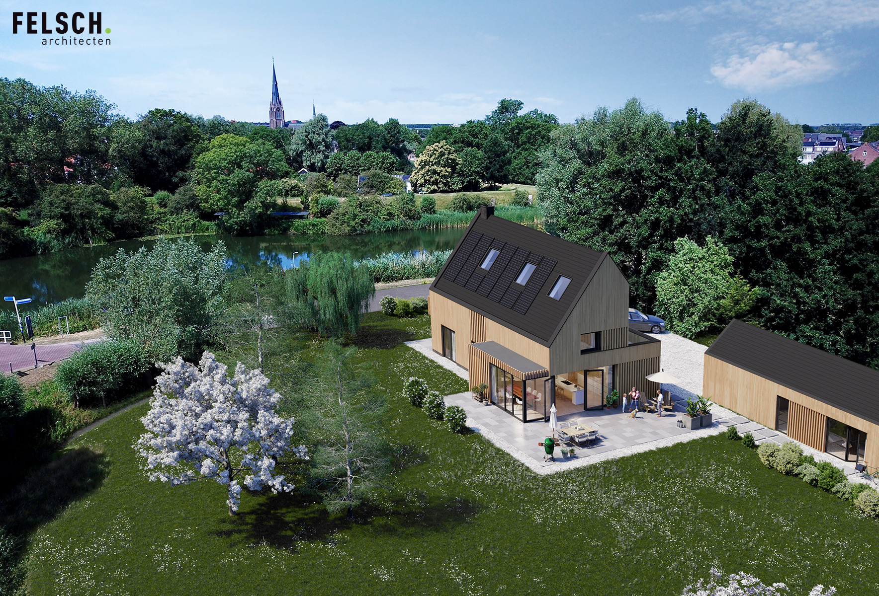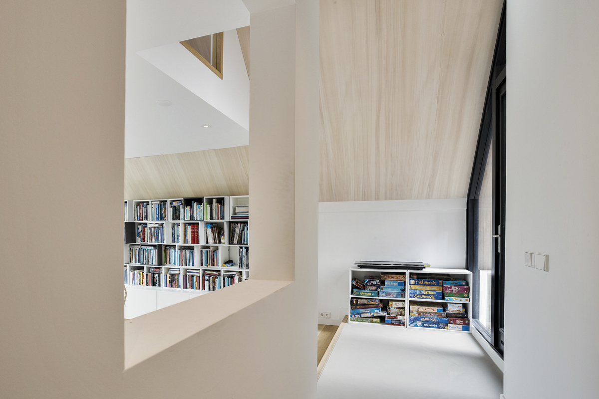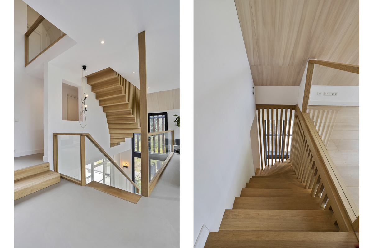 Voor een jong gezin hebben wij een duurzaam woonhuis aan de rivier de Vecht ontworpen. Het ruime kavel bevindt zich achter een dijk aan de rivier waardoor het iets lager ligt dan de Vecht. Om maximaal van de kwaliteit van de locatie gebruik te maken is de woonkamer op de eerste verdieping geplaatst met een schitterend uitzicht over de Vecht en het bastion van Weesp. De woonkeuken is juist aan het landje op de begane grond gelegd om van de tuin te genieten. De open vides bij de trappartij geeft een mooie ruimtelijke ervaring en verbinding tussen deze twee leefruimten. Dit wordt door het split level nog verder versterkt.