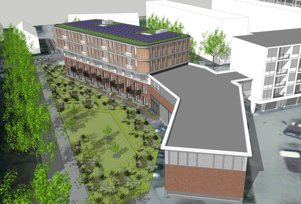Uitgangspunten van het ontwerp zijn enerzijds het bestaande ontwerp van de KPN centrale en het aangrenzende politiebureau herkenbaar te houden. Anderzijds ook om het gebouw terug te brengen naar een rustige heldere basis met een losse ophoping van twee verdiepingen. Dit met respect voor het gemeentelijk monument ‘De kleine Verfdoos’, de flat in Mondriaan kleuren en vlakken is tegen de centrale aan gebouwd. In samenspraak met de gemeente kunnen we bovenop het bestaande gebouw 2 lagen toevoegen. Daarbij is een zeer hoge duurzaamheidsambitie geformuleerd voor deze herontwikkellocatie op het gebied van natuurinclusief bouwen, energie, water en materiaalgebruik. Het nieuwe volume bovenop het gebouw wordt volledig van hout, met sedum dakbedekking en PV-panelen. In het gebouw komen twee stijgkernen met trappen en een lift. En de woningen worden ontsloten door een brede centrale corridor.
